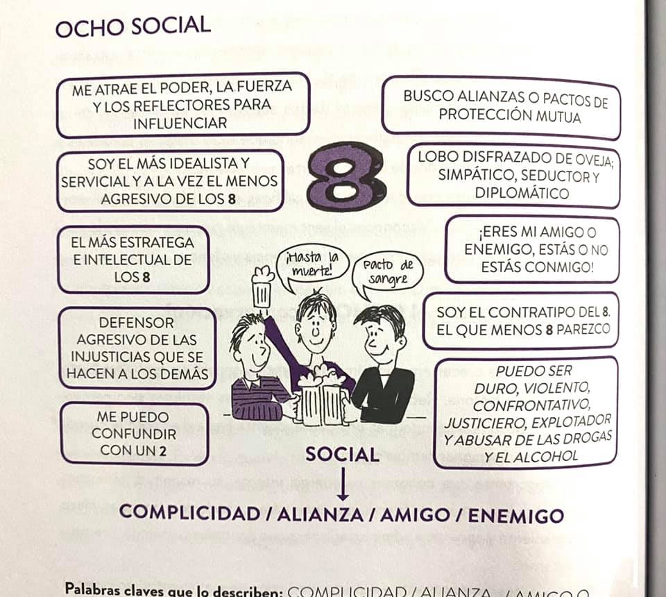 Quizás el ocho social se sale un poco más del papel habitual de «ocho malote», pero, a los ojos del resto de eneatipos, no deja de ser un ocho.
